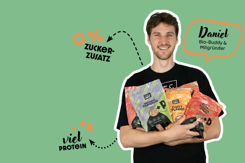 Wir sind ein sportbegeistertes Vater-Sohn-Duo mit der gemeinsamen Vision, euch mit hochwertigem, proteinreichem Müsli und Porridge zu versorgen. Mit PURE & GREAT wollen wir euch natürliche, vegane Zutaten bieten, die euch dabei unterstützen, bei euren täglichen Herausforderungen Vollgas zu geben. Wir setzen auf das Wesentliche: keine Zuckerzusätze, Süßstoffe oder künstliche Aromen – nur ehrliche, leckere Produkte mit einer extra Portion Protein. Für 100 % natürlichen Geschmack ohne Kompromisse. Eat pure, feel great!