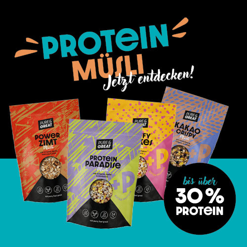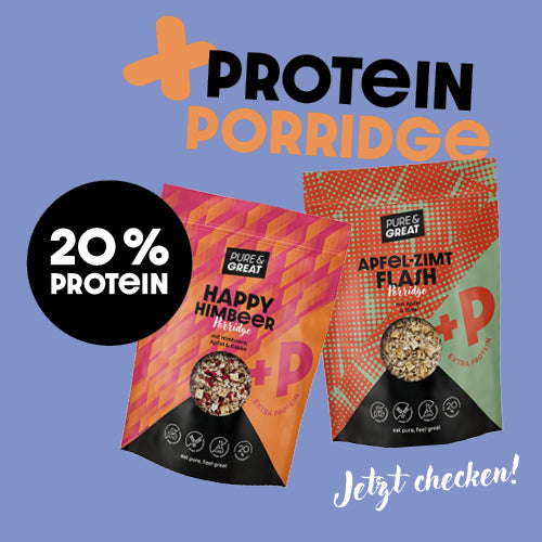 Frühstück: Statt zu (zuckerhaltigen) Cornflakes zu greifen, versuch es mal mit Haferflocken oder Chia-Pudding – beides hat einen niedrigeren GI und hält dich länger satt. Müslis und Porridges ohne Zuckerzusatzs von PURE & GREAT sind die perfekte Wahl, wenn du Wert auf natürliche Süße und langanhaltende Energie legst.