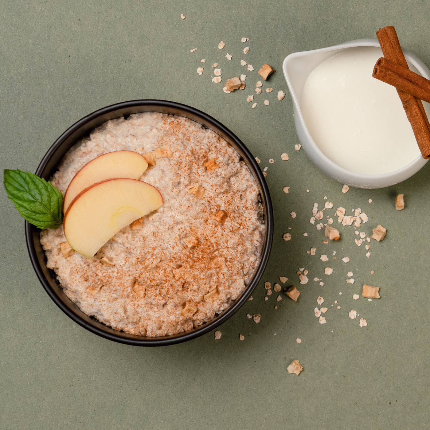 Apfel-Zimt Flash Protein Porridge: Apfelstrudel-Vibes ohne Kalorienbombe! Hier treffen süße Bio-Äpfel auf würzigen Zimt und bringen dir 20 % Protein für einen Tag voller Power.