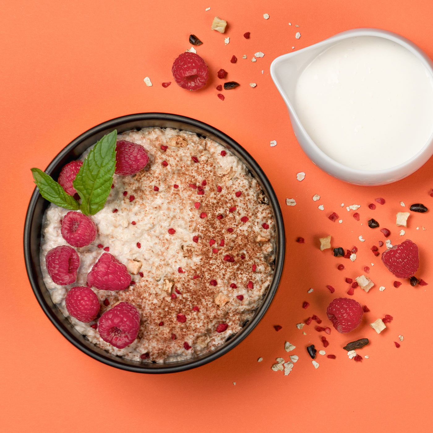 Happy Himbeer Protein Porridge: Fruchtiger geht’s nicht! Mit saftigen Himbeeren und zarten Haferflocken schmeckt dieses Porridge wie der perfekte Sommermorgen. Plus: Mit 20 % Protein ist es der perfekte Muscle-Boost für den Start in deinen Tag.