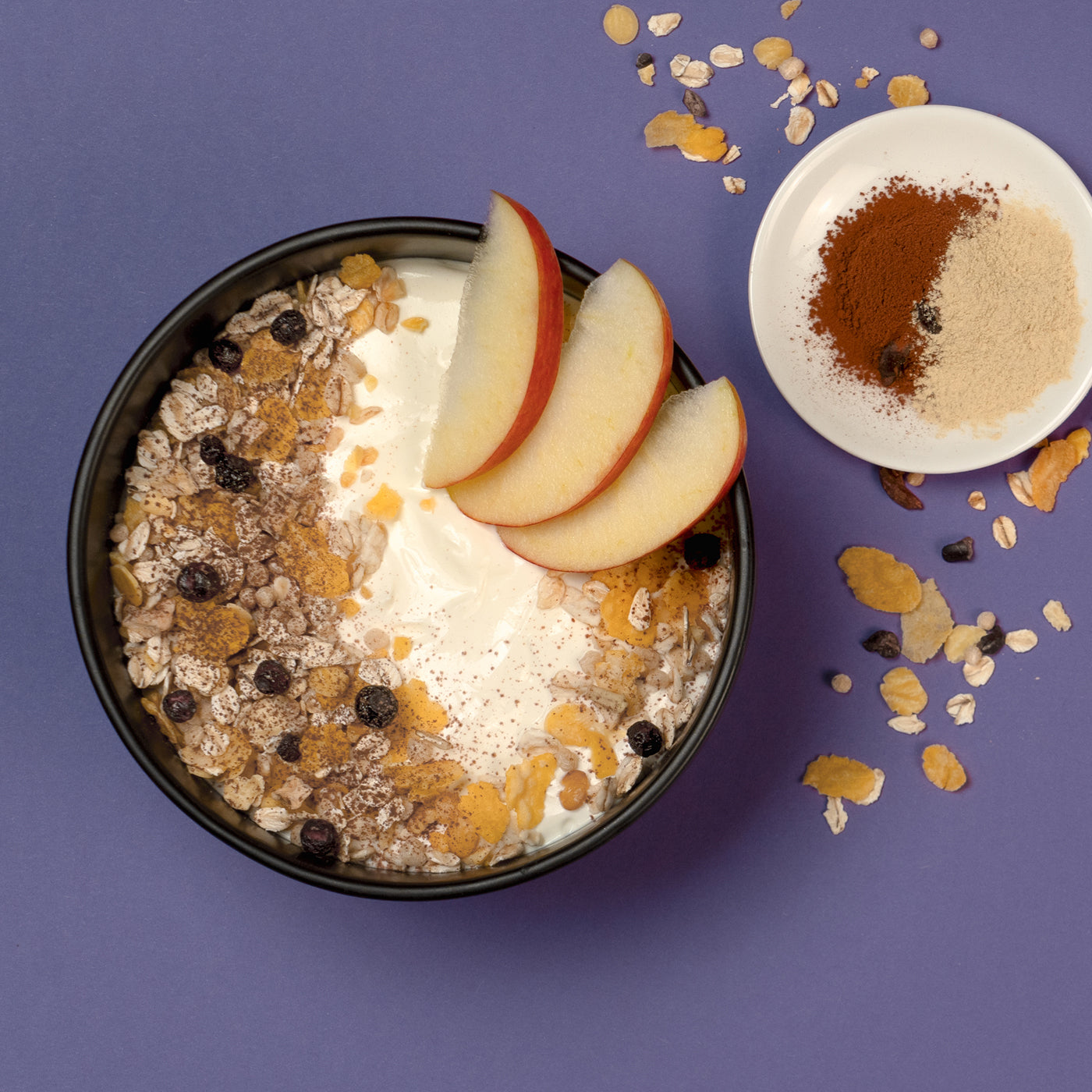 Power Zimt Protein Müsli: Bock auf Zimt-Explosion? Dann ist dieses Müsli dein Ding! Zimt, knackige Walnüsse, süße Apfelstückchen und crunchy Quinoapuffies sorgen für den ultimativen Geschmackskick – und fette 22 % Protein gibt´s dazu!